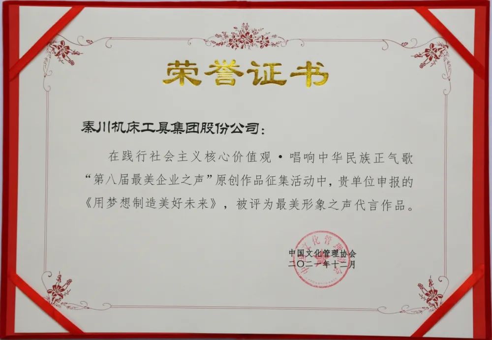 秦川集團榮獲“新時代企業黨建實踐創新·典范單位”榮譽稱號,選送的原創短視頻作品《用夢想制造美好未來》獲“最美形象之聲代言作品”。